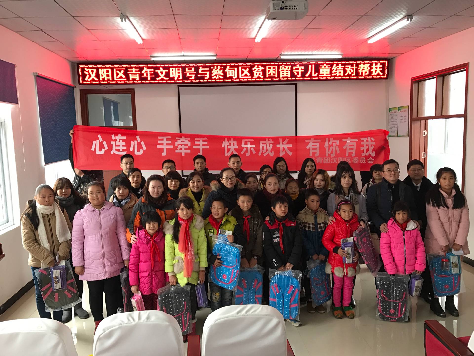 11月24日,為認(rèn)真落實(shí)共青團(tuán)助力脫貧攻堅(jiān)電視電話(huà)會(huì)議精神,根據(jù)“關(guān)愛(ài)留守兒童,助力精準(zhǔn)扶貧”行動(dòng)整體安排,漢陽(yáng)團(tuán)區(qū)委組織全區(qū)20個(gè)市級(jí)以上青年文明號(hào)單位赴蔡甸區(qū)消泗鄉(xiāng),集中慰問(wèn)幫扶貧困留守兒童,并進(jìn)行現(xiàn)場(chǎng)結(jié)對(duì),我公司參與了此次慰問(wèn)幫扶活動(dòng)。