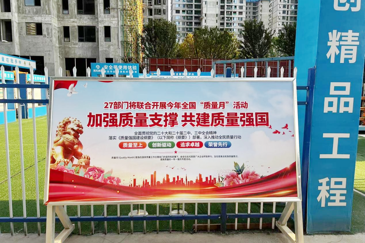 “質(zhì)量月”活動(dòng)期間,公司各在建項(xiàng)目利用橫幅、展板、宣傳畫(huà)在辦公區(qū)、生活區(qū)、施工現(xiàn)場(chǎng)等主要活動(dòng)區(qū)域?qū)|(zhì)量月進(jìn)行全方位的宣傳,努力營(yíng)造人人關(guān)心質(zhì)量、重視質(zhì)量、參與質(zhì)量、享受質(zhì)量的濃厚氛圍。