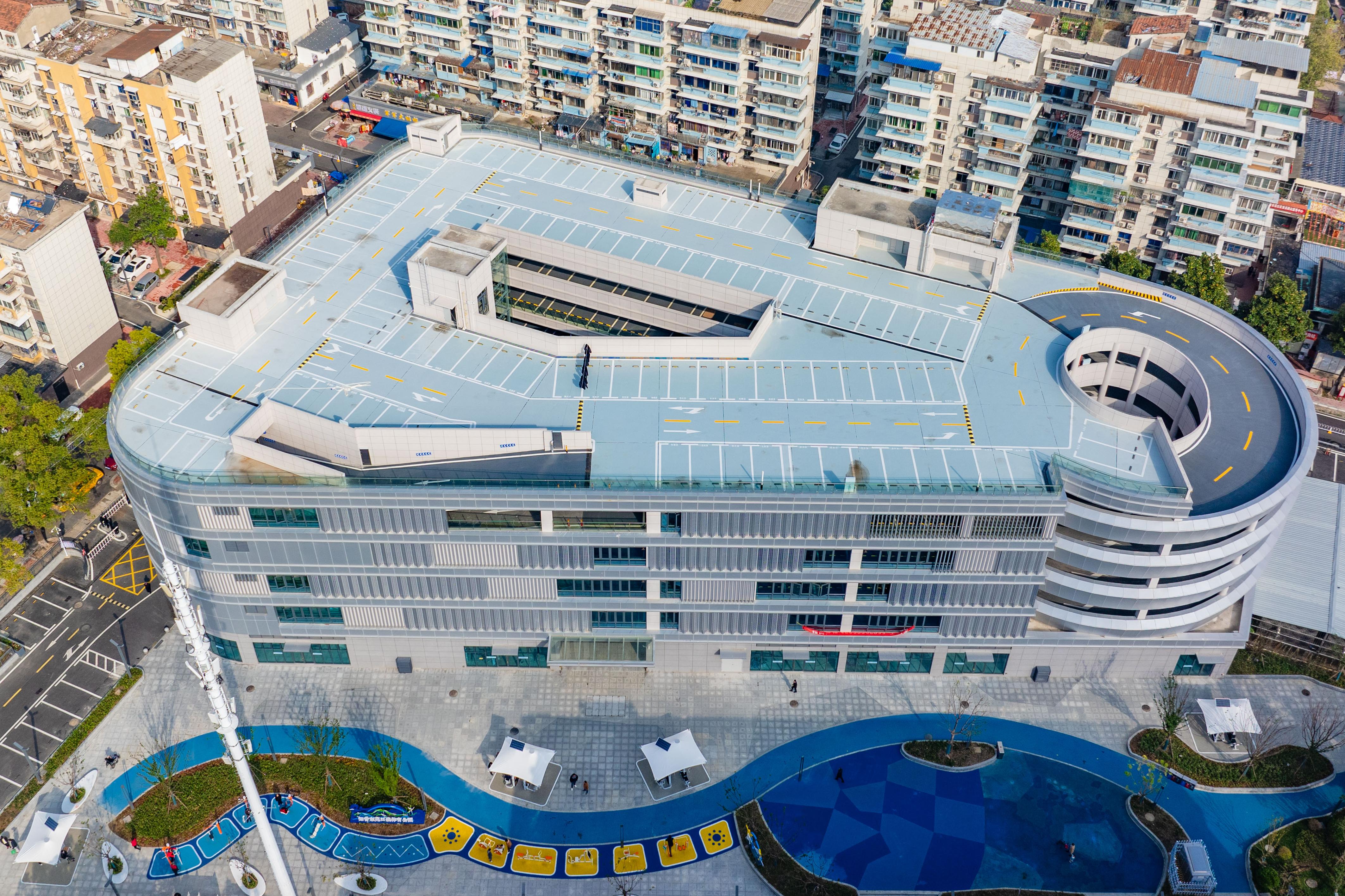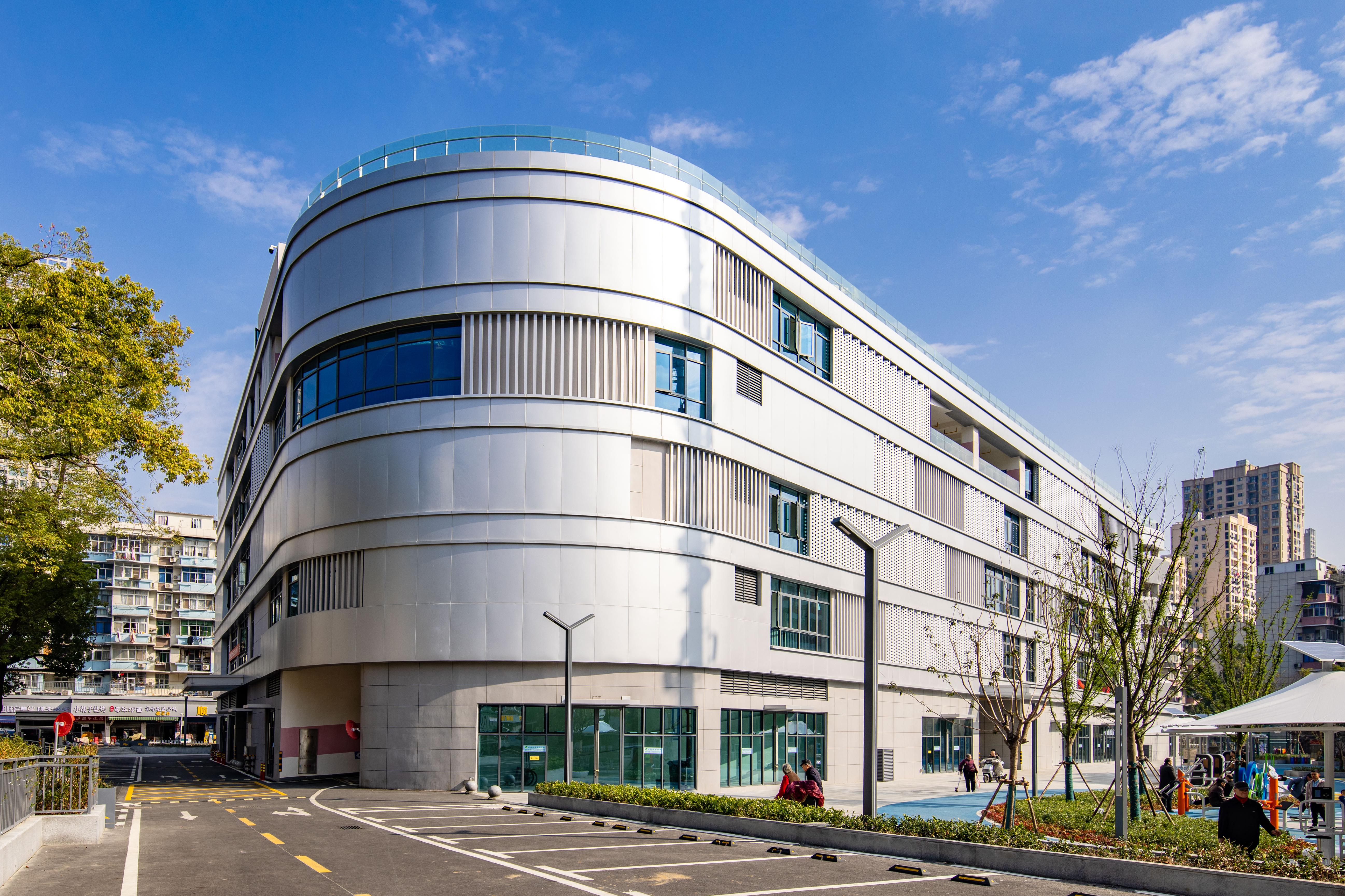 這棟別具一格的5層銀灰色綜合停車樓,不僅新增了450個(gè)停車位,還是居民的開放式“薈鄰中心”,樓外廣場(chǎng)設(shè)有“一老一少”休閑健身娛樂(lè)設(shè)施,籃球場(chǎng)、環(huán)形跑道、藍(lán)色沙池一應(yīng)俱全,樓內(nèi)1至2層設(shè)有1300平米的社區(qū)文化活動(dòng)室、康養(yǎng)中心、應(yīng)急中心、圖書館等公共服務(wù)設(shè)施,后期還將圍繞社區(qū)打造全方位的便民生活圈。