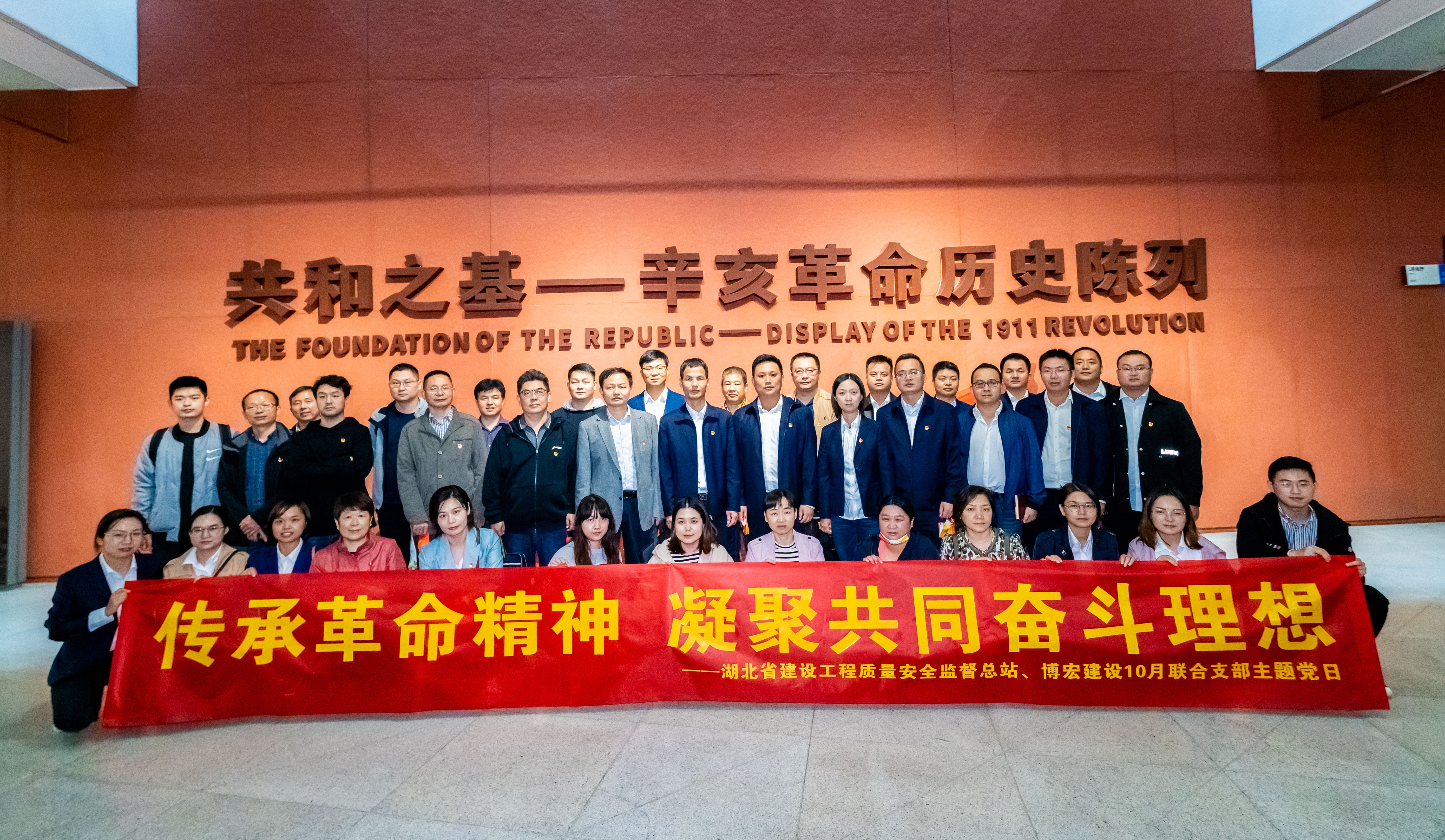 10月14日,湖北省建設(shè)工程質(zhì)量安全監(jiān)督總站(簡(jiǎn)稱“省質(zhì)安總站”)與博宏建設(shè)聯(lián)合開展“傳承革命精神,凝聚共同奮斗理想”10月主題黨日活動(dòng)。省質(zhì)安總站黨支部書記、站長楊碧華、副站長丁建平、副站長徐建軍,博宏建設(shè)黨支部書記、董事長鄒勇,總經(jīng)理蘇琦、黨支部副書記郭一清、副總經(jīng)理辛桂華等共計(jì)40名黨員同志參與此次活動(dòng)。
